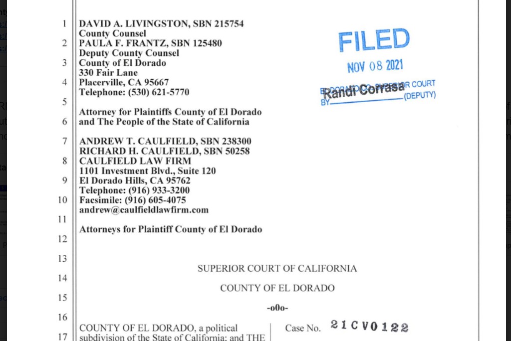 (PLACERVILLE, CA) – El Dorado County filed a complaint in Superior Court against two local restaurants which continue to operate without required health permits in violation of the State’s Health and Safety Code and County Environmental Health ordinances. The lawsuit seeks an order from the Court requiring the restaurants to close until they obtain a health permit.
