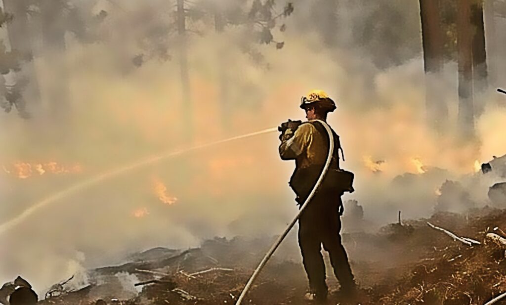 Firefighters with the Los Angeles County Fire Department work to put out the Caldor Fire in the Christmas Valley area of South Lake Tahoe, Calif. on Aug. 31, 2021. The Caldor Fire forever changed what residents of the Lake Tahoe area expect from wildfires. It crested the Sierra Nevada, burned an area larger than New York City and affirmed how dry conditions make fire more likely to ignite and more difficult to contain, the Reno Gazette-Journal reported.(Jason Bean/The Reno Gazette-Journal via AP) JASON BEAN AP