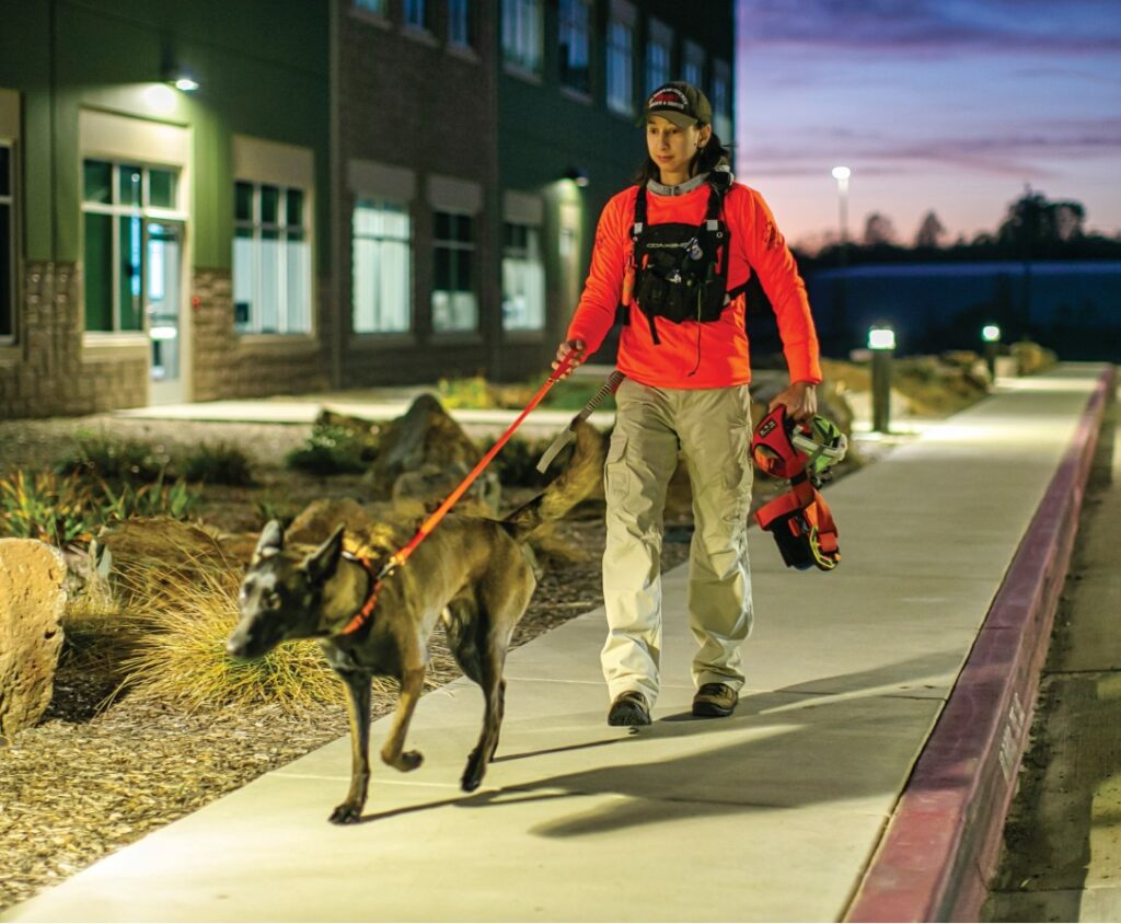 Ellert has been with the unit since 2018, working mostly ground searches, she says, but also on the K-9, mounted and technical rope rescue teams. She’s put in hundreds of hours on “lots of little searches that didn’t make the news,” she says, but also notably the Caldor and Camp (Paradise) fires. Ellert is currently halfway through a two-year training program for a 1-year-old Belgian Malinois, getting her ready to be eventually used by the K-9 team.