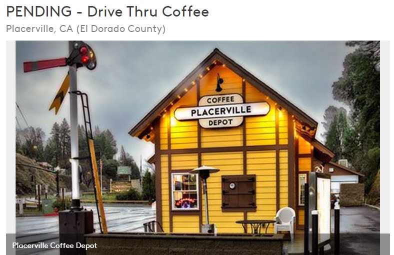 Embodying a love of history, railroads and coffee, the orange and brown Placerville Coffee Depot at 70 Main Street, located at the entrance to Placerville. Peets Coffee branded independent drive through coffee shop. High traffic counts just off Highway 50 in Placerville.