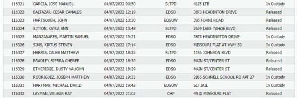 Occurred at Walmart on Missouri Flat Rd. , in Placerville. . Disposition: ARREST .